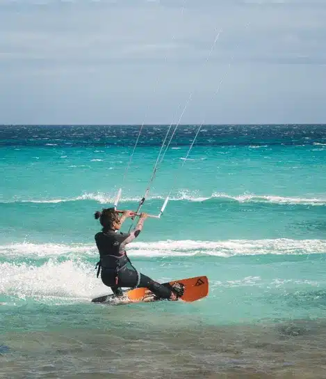 Nosaltres ens encarreguem de tot: estel, barra, taula, arnès, armilla de flotació, casc i neoprè. Tu només has de portar protecció solar, ulleres de sol amb subjecció i moltes ganes de gaudir del mar.